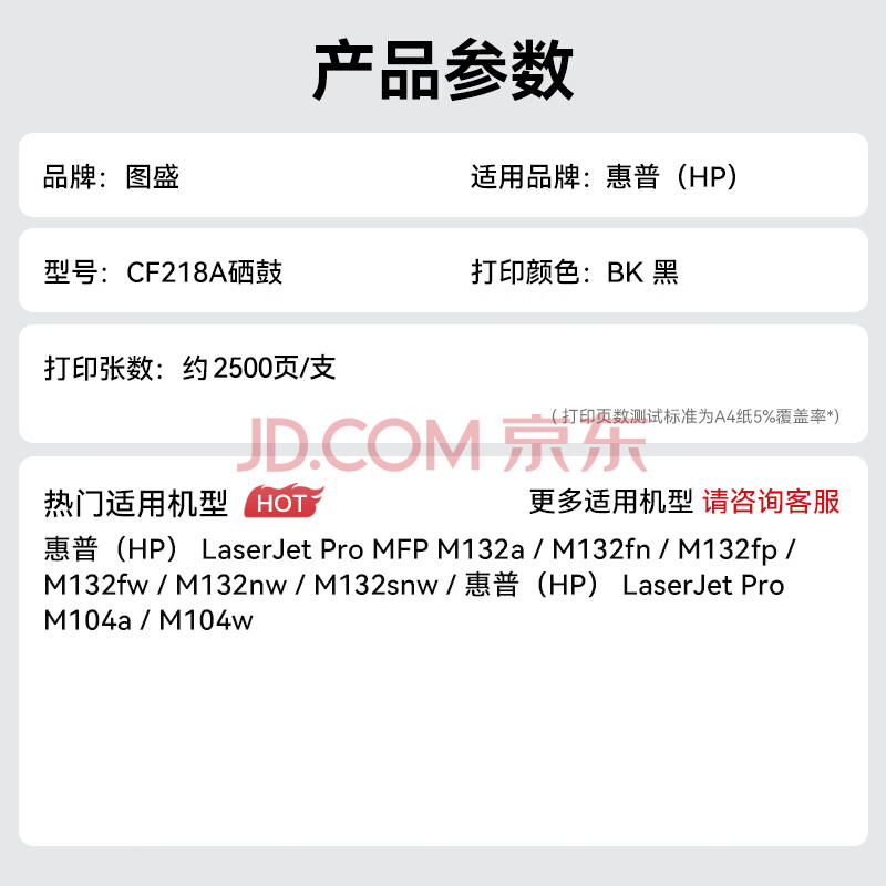 商品相册:图盛适用惠普M132nw硒鼓CF218A硒鼓 HP M132a 132snw 132fn 132fw 132fp M104w M104a打印机碳粉盒墨盒18a硒鼓第