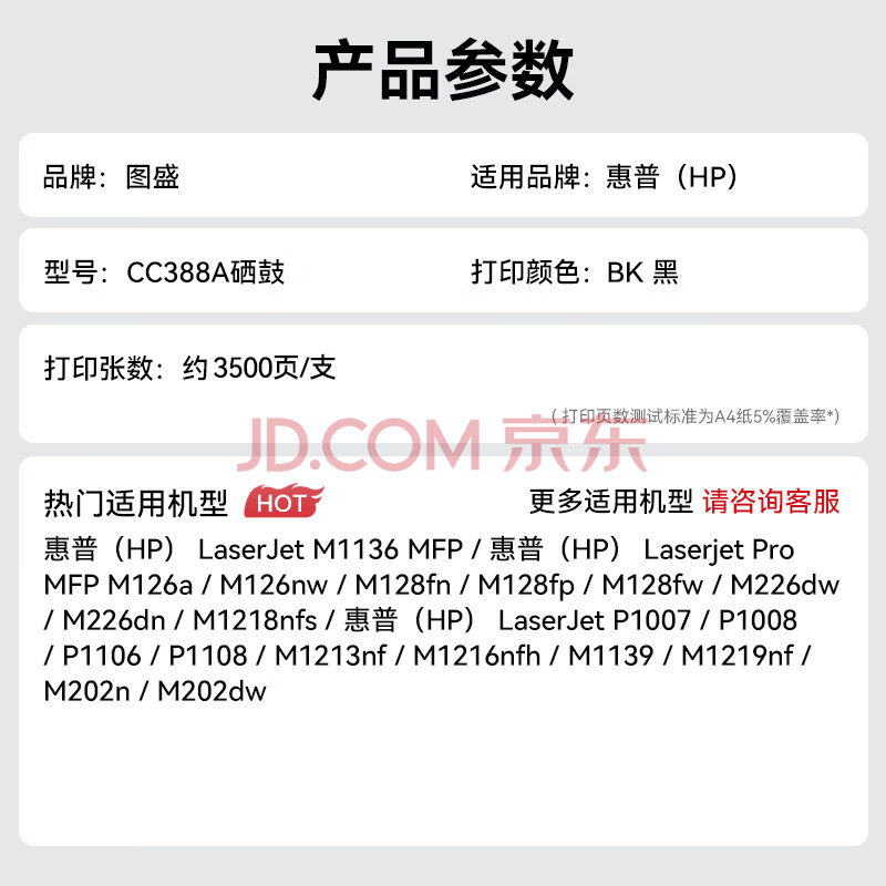 商品相册:图盛388a硒鼓适用惠普M1136硒鼓HP M126a M126nw P1108 P1007 P1106 M128fn M1136mfp打印机墨盒88a硒鼓CC388A第