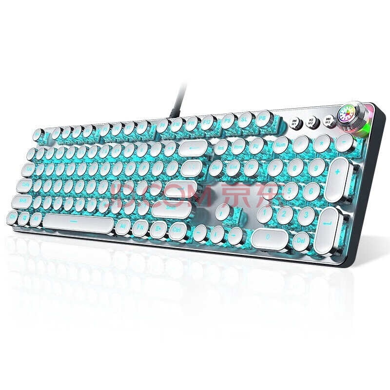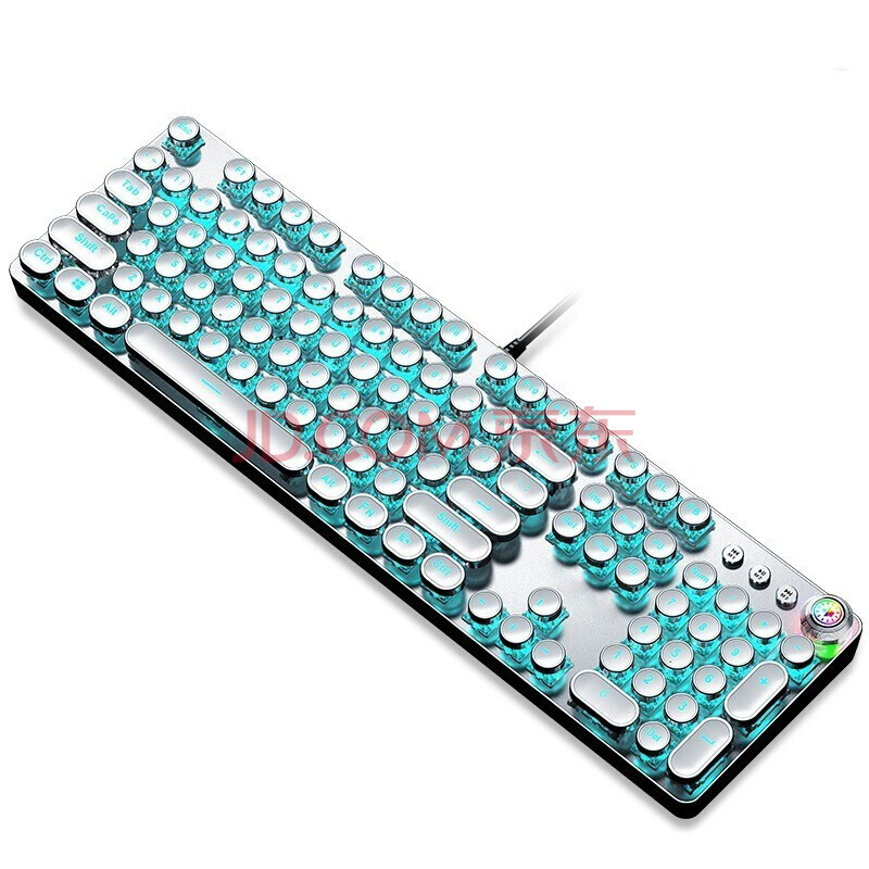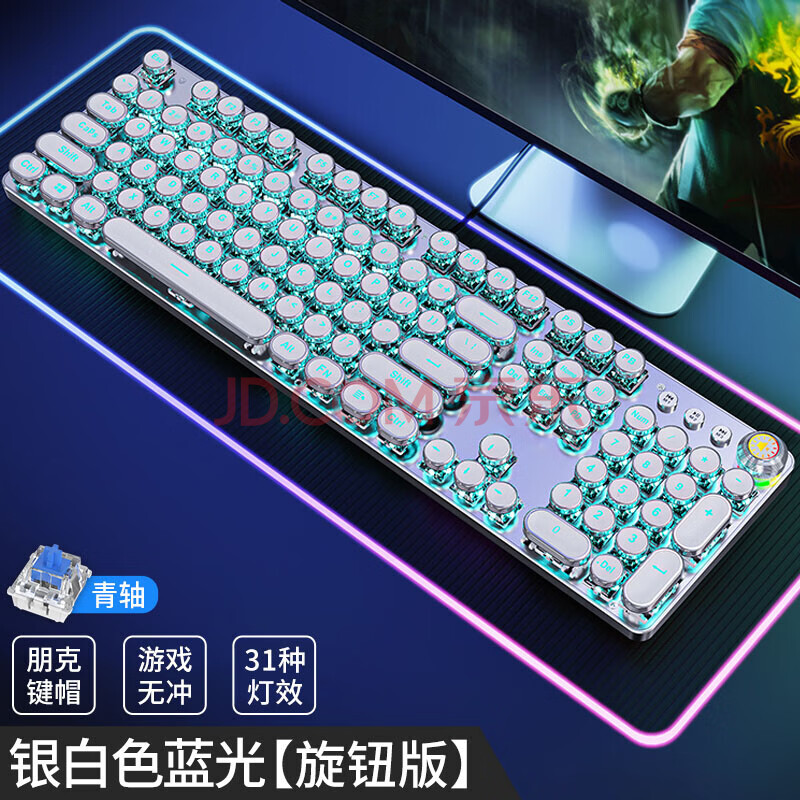 商品相册:前行者(EWEADN)TK100朋克机械键盘鼠标套装电竞游戏有线台式电脑笔记本键鼠办公复古外设吃鸡104键 白色冰蓝光第