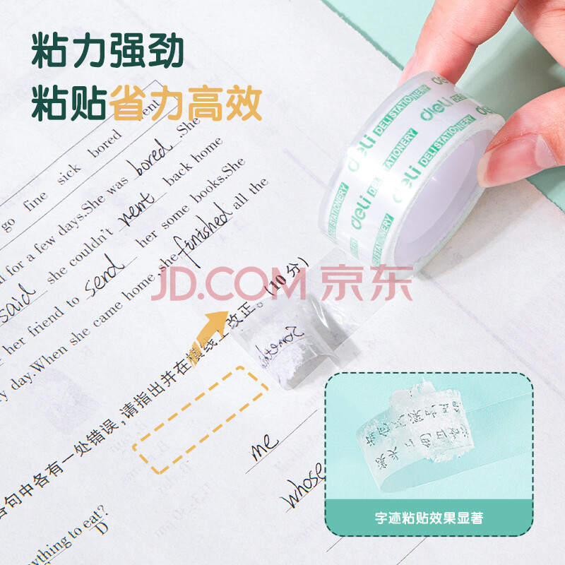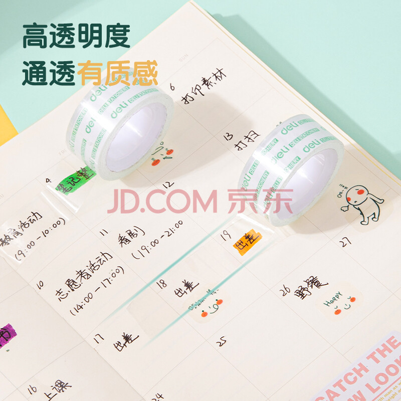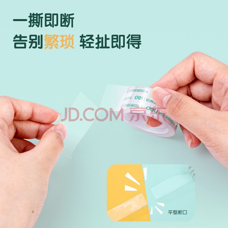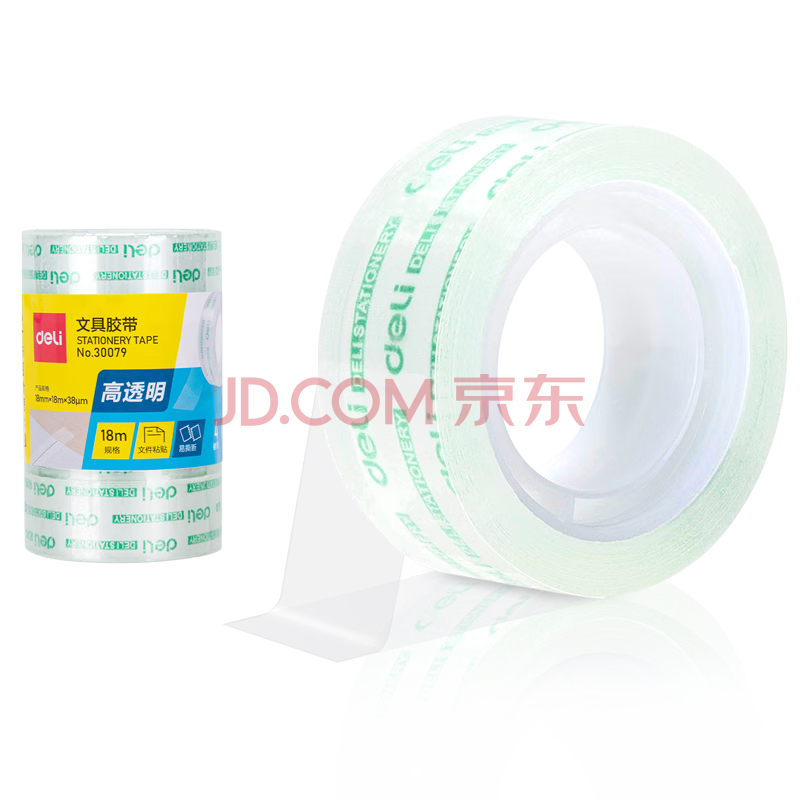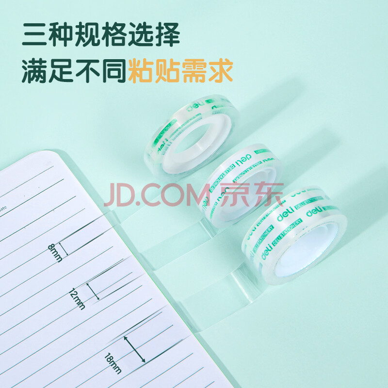商品相册:得力(deli)易撕透明胶带 18mm*18m高粘小胶带 开学必备学习用品 错题整理学生文具 4卷/筒 办公用品 30079第1张/共9