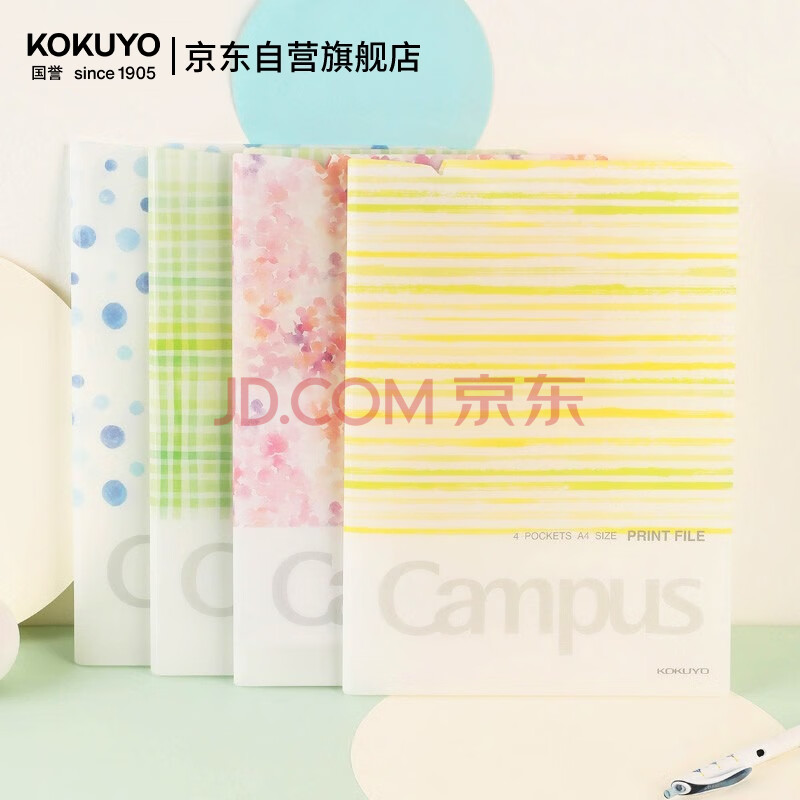 商品相册:国誉(KOKUYO)A4分类文件夹水彩絮语Campus学生收纳册文件袋 绿色 WSG-FUD810G第