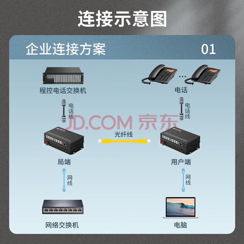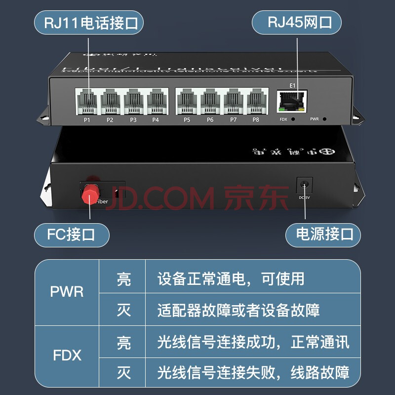 商品相册:中科光电8路电话光端机+1路百兆网络 PCM语音光端机 电话光纤收发器 光电转换器 FC口一对 ZK-8P1E-20KM/FC第