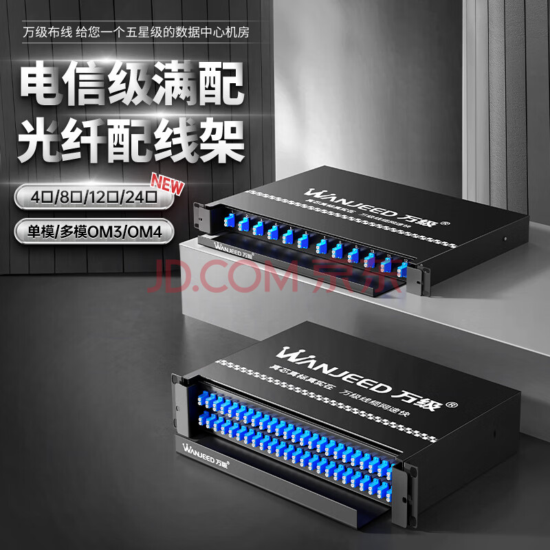 商品相册:万级(WANJEED)24口48芯光纤配线架 单模LC满配抽拉式光纤熔纤盒电信级odf配线架含尾纤终端盒2-32131第