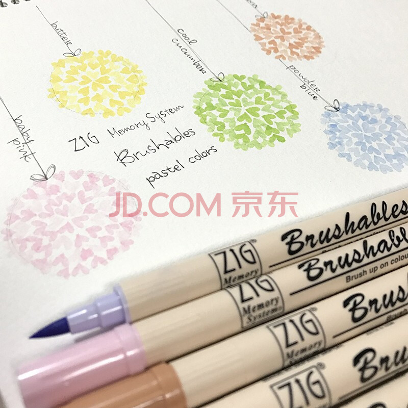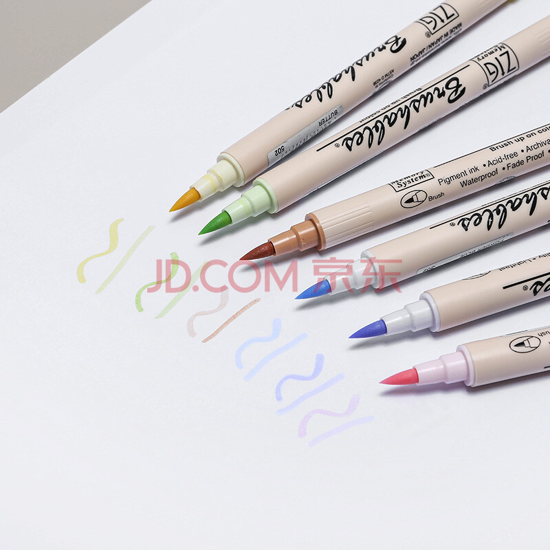 商品相册:吴竹(KURETAKE)日本进口同色深浅双色刷头软头笔防水水彩手账彩绘6色浅色套装MS-7700/6VPA水彩笔第