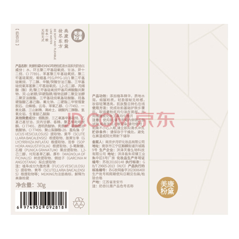 商品相册:美康粉黛鸣艳粉底液遮瑕 脆弱肌控油持久保湿提亮肤色自然裸妆礼物 奶杏01第1张/共8