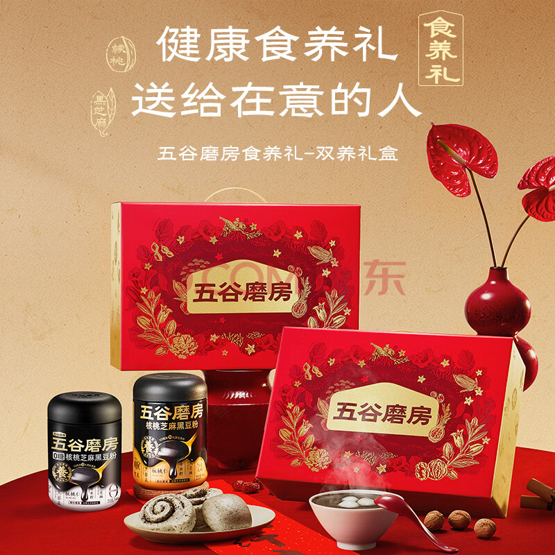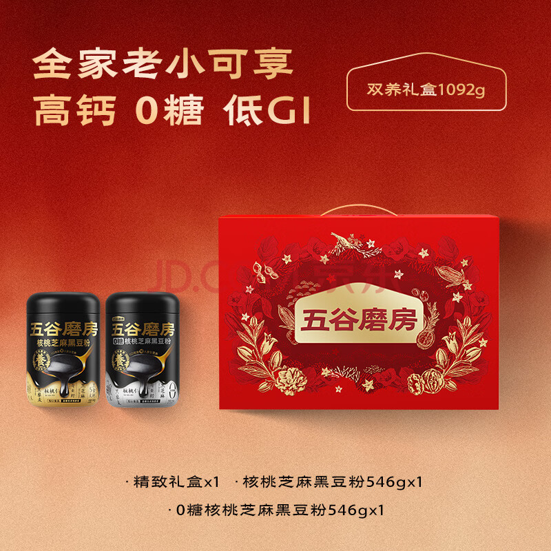 商品相册:五谷磨房黑芝麻糊低GI原味无糖核桃芝麻黑豆粉礼品送长辈送父母1092g第