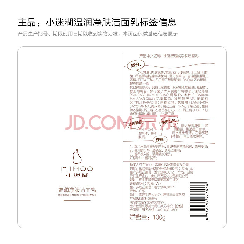 商品相册:小迷糊温润净肤洁面乳100g深层清洁礼物洗面奶礼物第