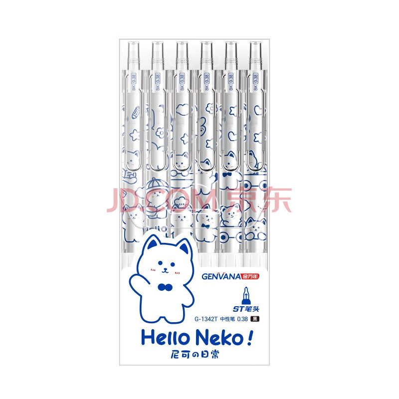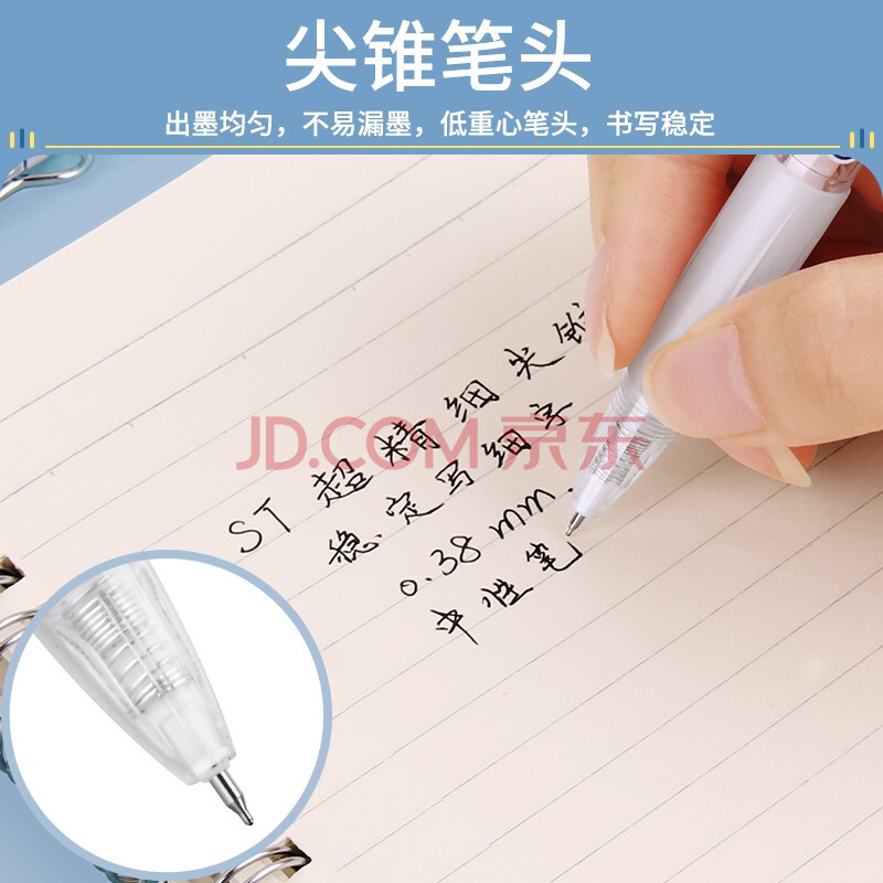 商品相册:金万年0.38mm按动中性笔ST超精细尖锥写细字 学生水笔培训会议签字笔办公黑色6支装 G-1342T第