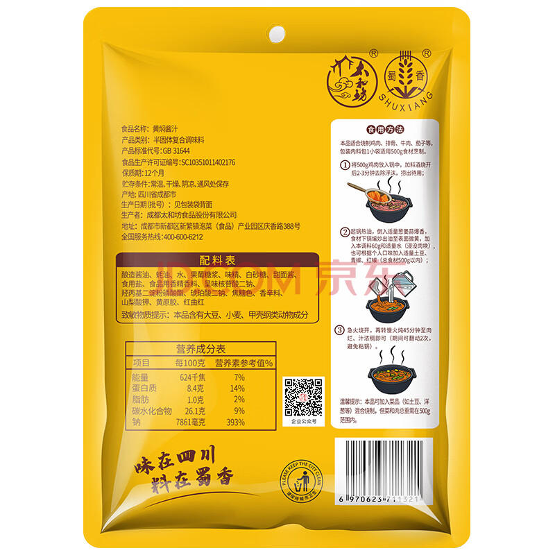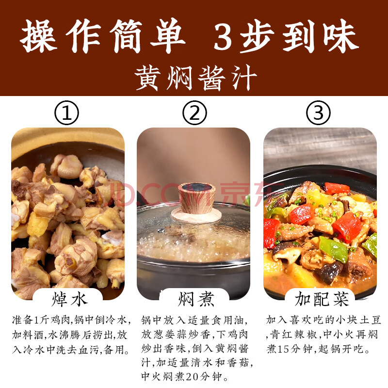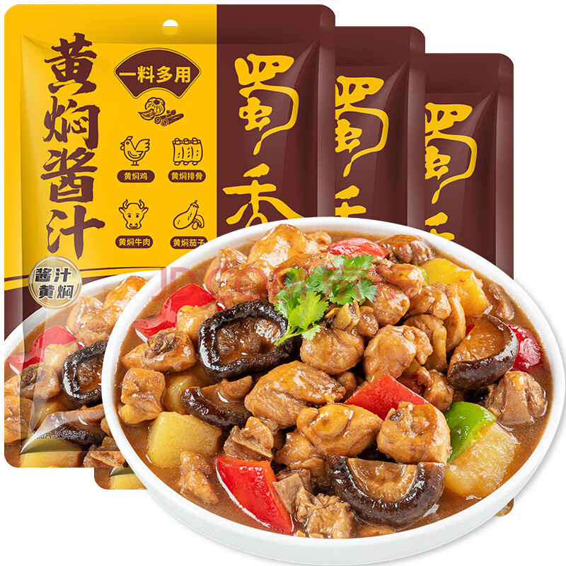 商品相册:蜀香黄焖酱汁120g*3袋 黄焖鸡调料焖排骨黄焖牛肉黄焖鸡米饭黄焖猪蹄第