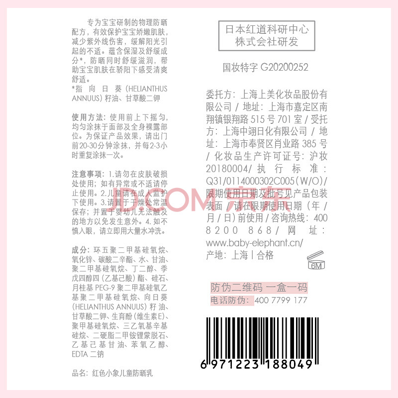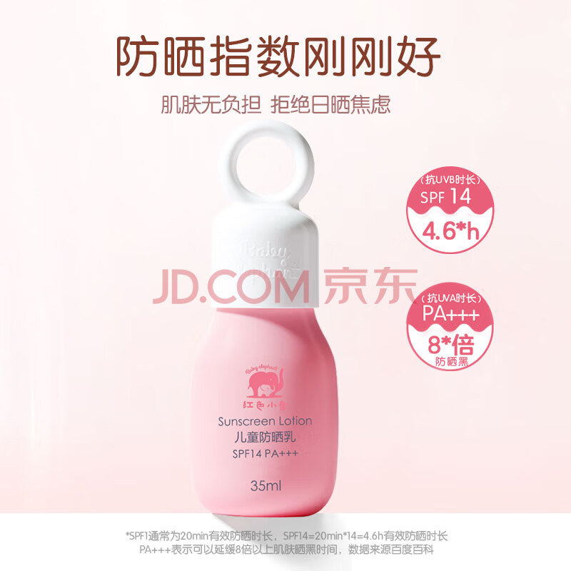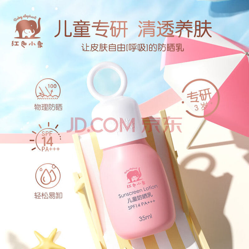 商品相册:红色小象儿童防晒霜35ml SPF14 PA+++ 宝宝户外物理防晒隔离紫外线第
