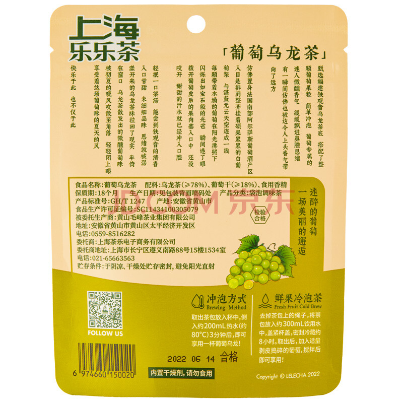 商品相册:乐乐茶 葡萄乌龙茶袋泡茶7包 围炉煮茶包 秋冬冷热泡茶水果茶袋泡茶第