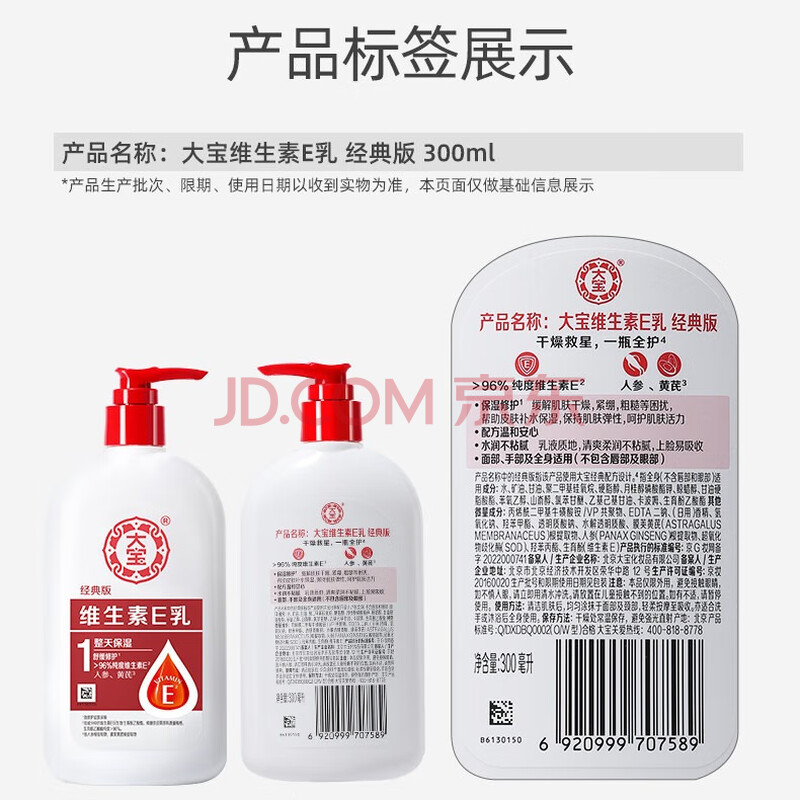 商品相册:大宝维生素E乳300ml(泵头款)乳液面霜保湿润肤男女士护肤品第