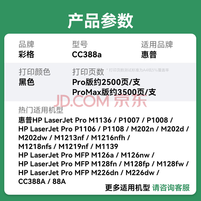 商品相册:彩格m1136硒鼓适用惠普hp cc388a硒鼓88a m126a p1106 p1108 p1007 m1213 m1216 m202n m128fn打印机硒鼓墨盒第