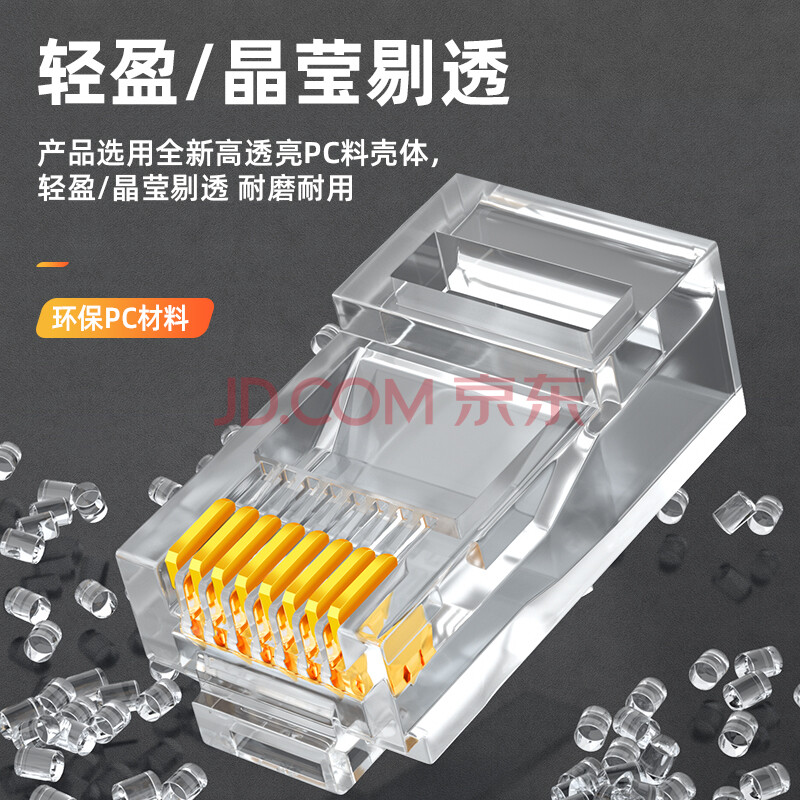 商品相册:山泽 六类工程级水晶头 6类千兆网络RJ45网络水晶头 Cat6类网线接头 15U镀金网线水晶头 100个 SJ-6100第1张/共7