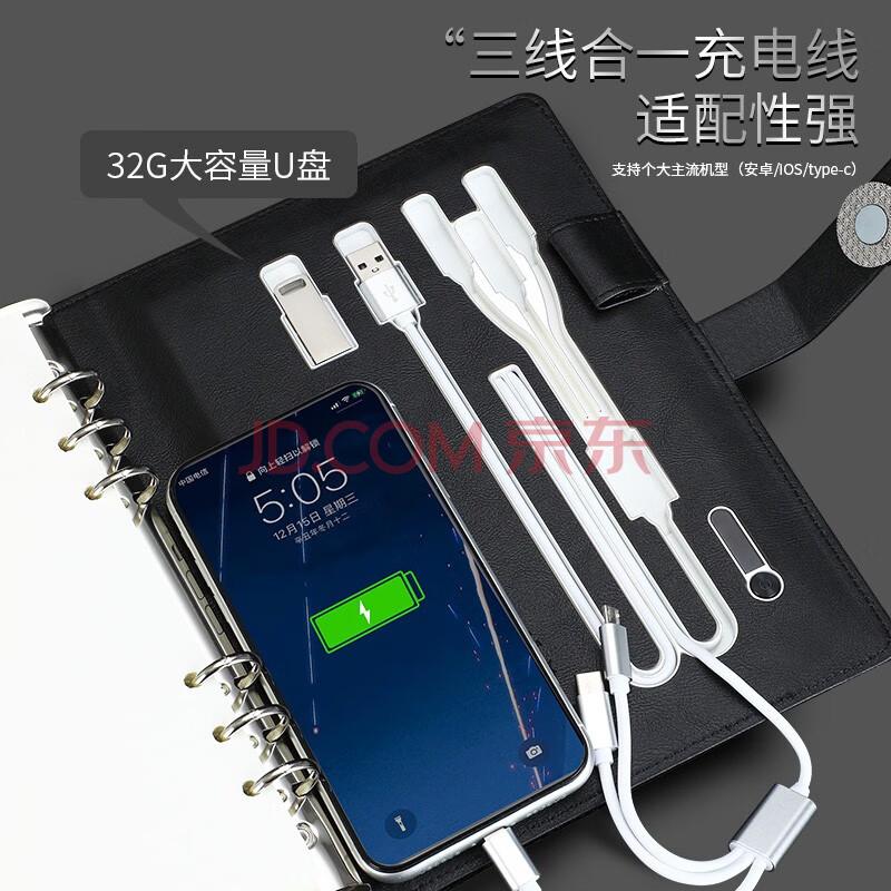 商品相册:嘉然恒 可充电笔记本本子电源本办公室礼品定制无线充多功能记事本移动电源活页本高档礼盒装送礼 棕色第