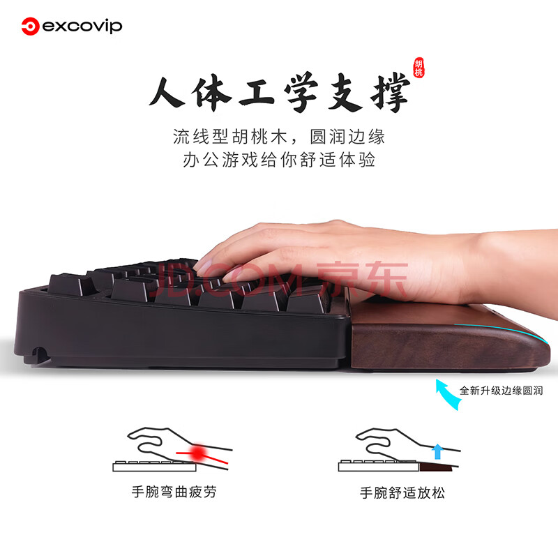 商品相册:宜适酷(EXCO)胡桃木87键实木 键盘托机械键盘手托电脑掌托鼠标垫护腕垫电竞木质腕托84键大号9543第
