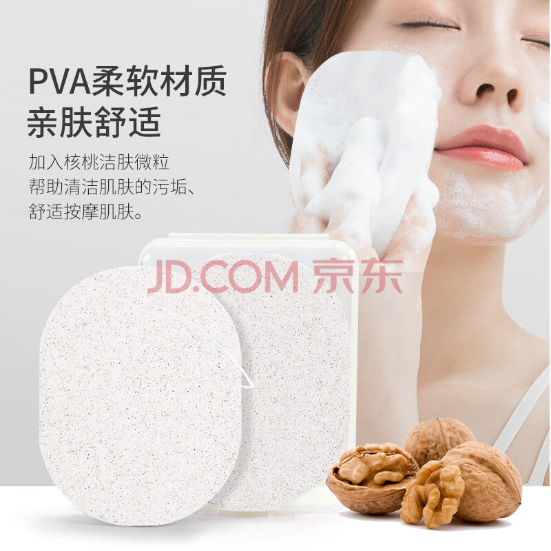 商品相册:优家(UPLUS)核桃微粒美肤洗脸扑洁面扑2个含收纳盒 清洁力强洗脸海绵第