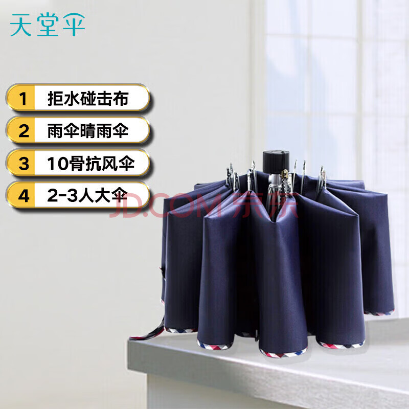 商品相册:天堂 双人晴雨伞三折遮阳伞10骨加大加固抗风易甩干大伞 3311深藏青第1张/共3