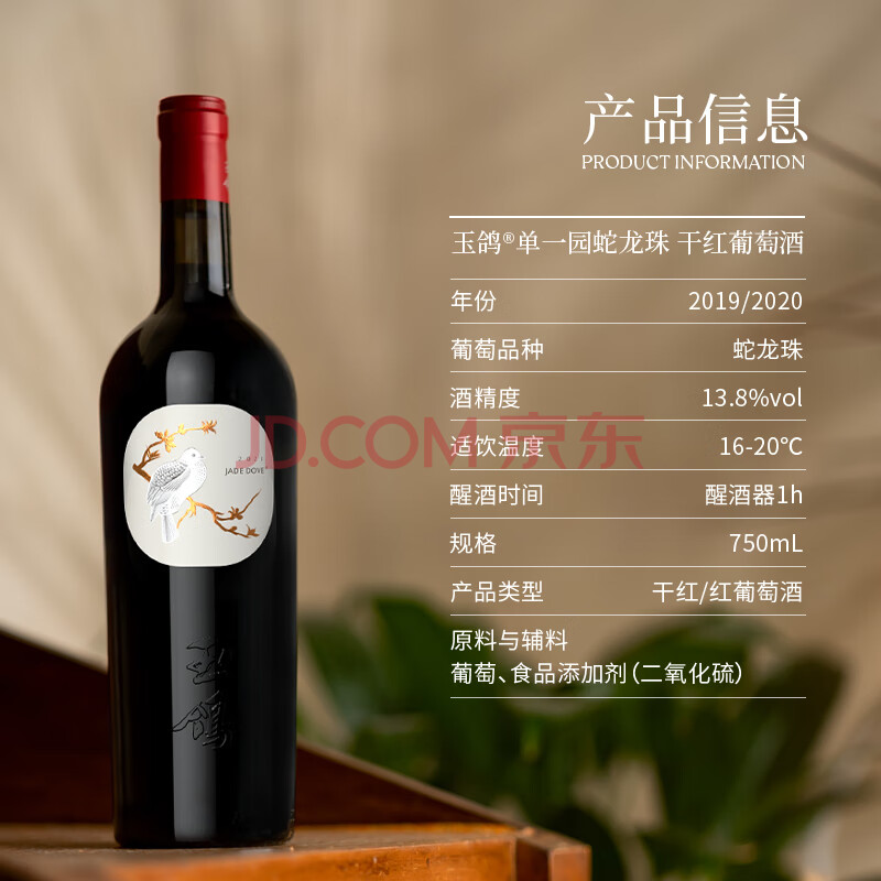 商品相册:西鸽酒庄玉鸽单一园蛇龙珠干红葡萄酒750ml 宁夏贺兰山国产红酒微醺送礼第
