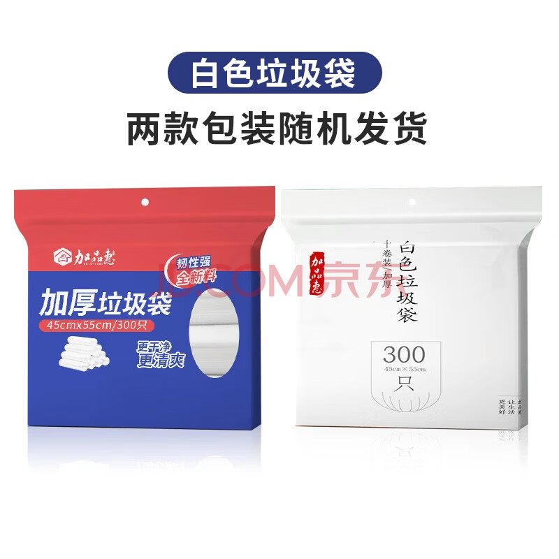 商品相册:加品惠垃圾袋白色45*55cm300只0.8丝单层点断办公家用垃圾桶袋0709第