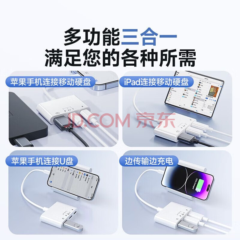 商品相册:JOWOYE苹果手机移动硬盘转接头OTG套件iphone/ipad转换器lightning转USB3.0外接u盘键盘鼠标电子琴麦克风第