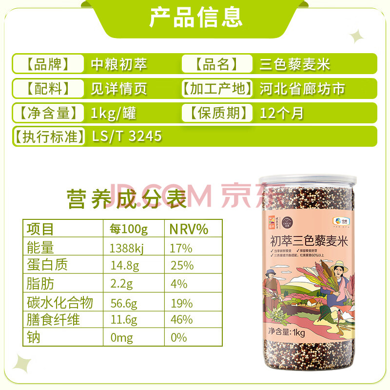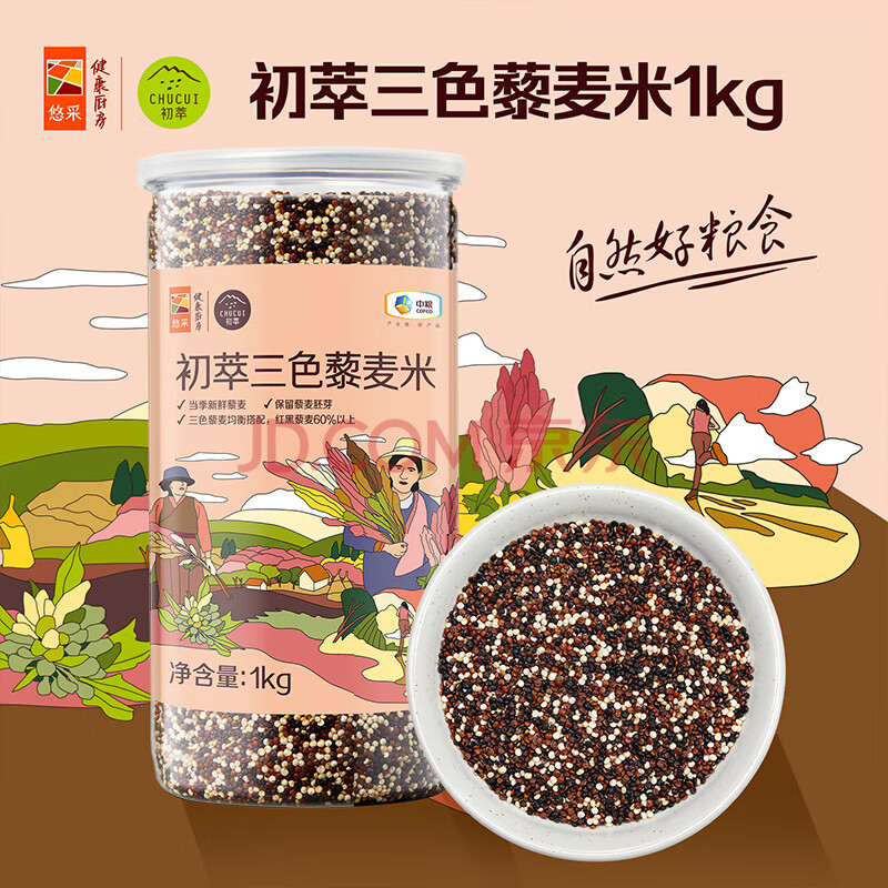 商品相册:初萃 中粮高原三色藜麦米2斤 青海原产(白藜麦 黑藜麦 红藜麦)粗粮第