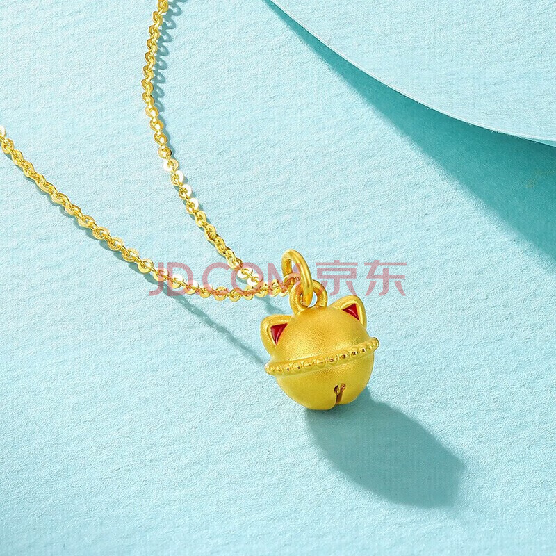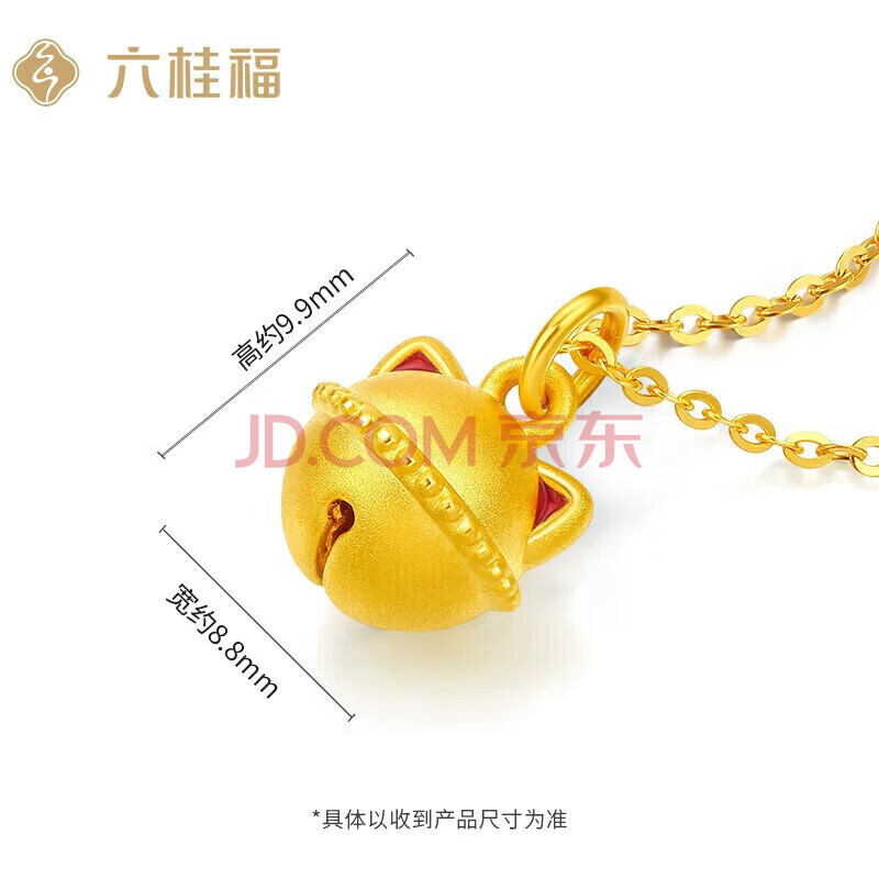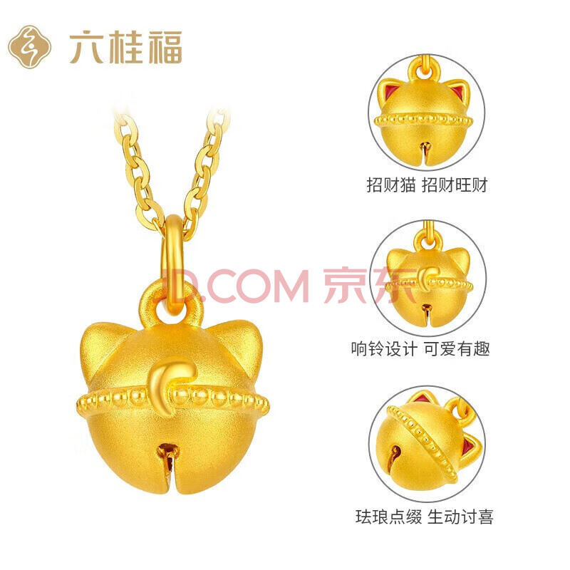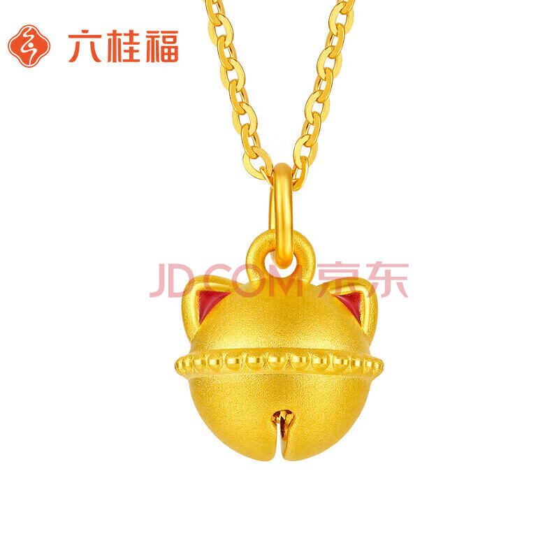商品相册:六桂福珠宝 黄金吊坠响铃招财福猫5D硬足金项链女第