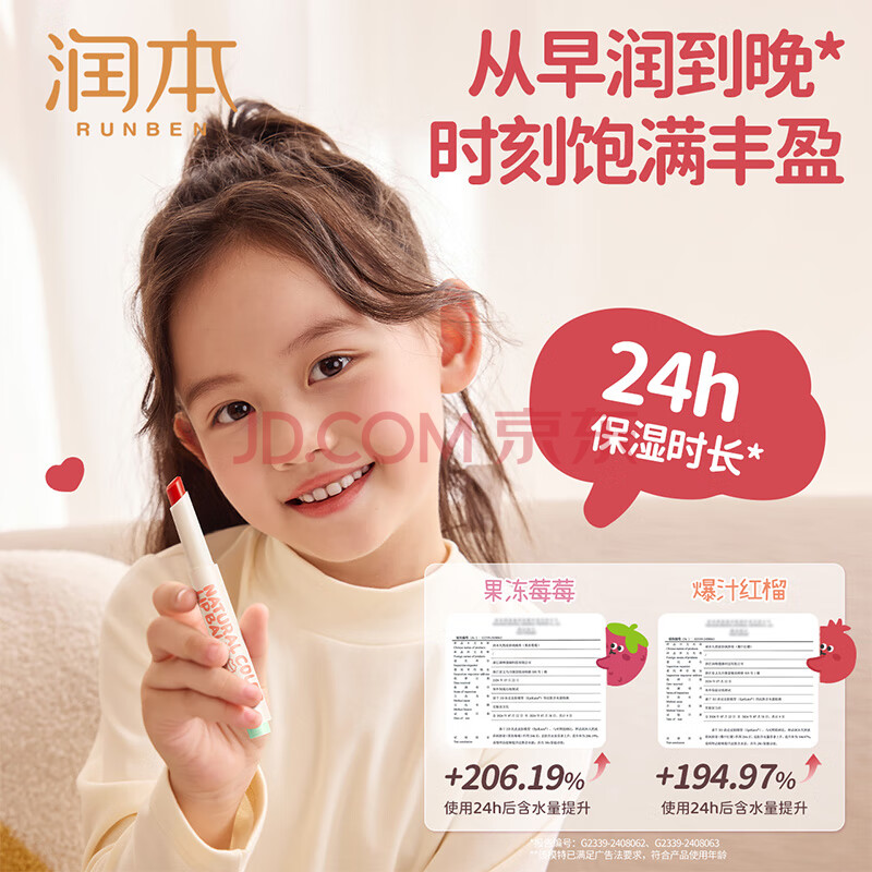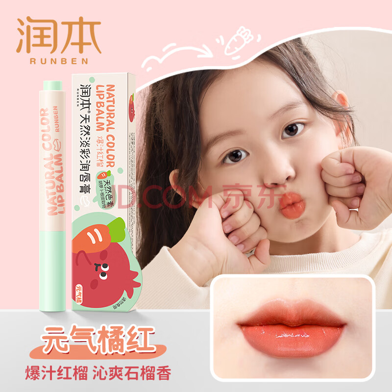 商品相册:润本儿童口红润唇膏3-6岁+专用化妆品女孩舞台表演彩妆[元气橘红]2g第