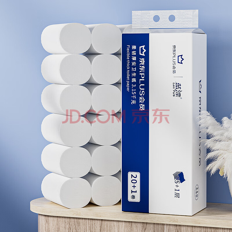 商品相册:蓝漂XPLUS会员联名款 6层150克*21卷共3.15kg无芯卷纸 扁卷纸卫生纸巾第