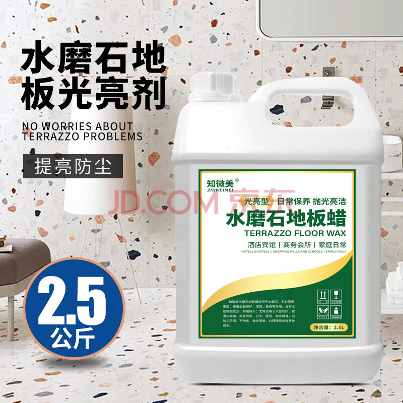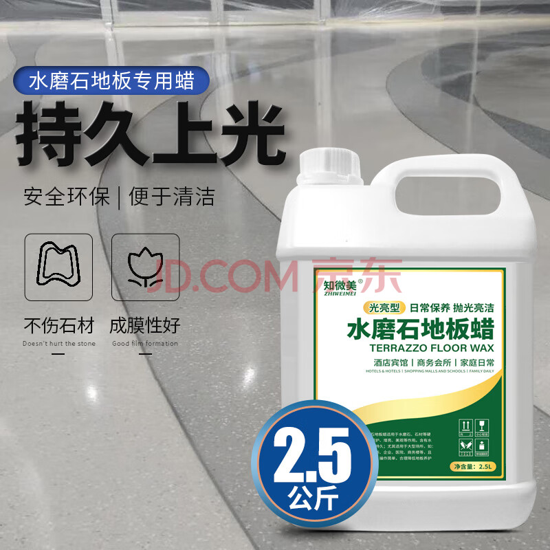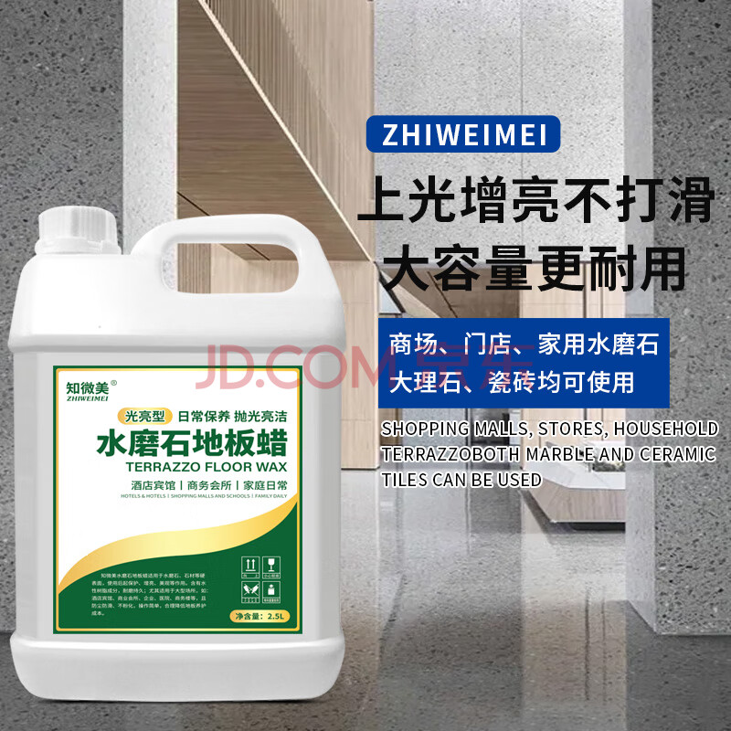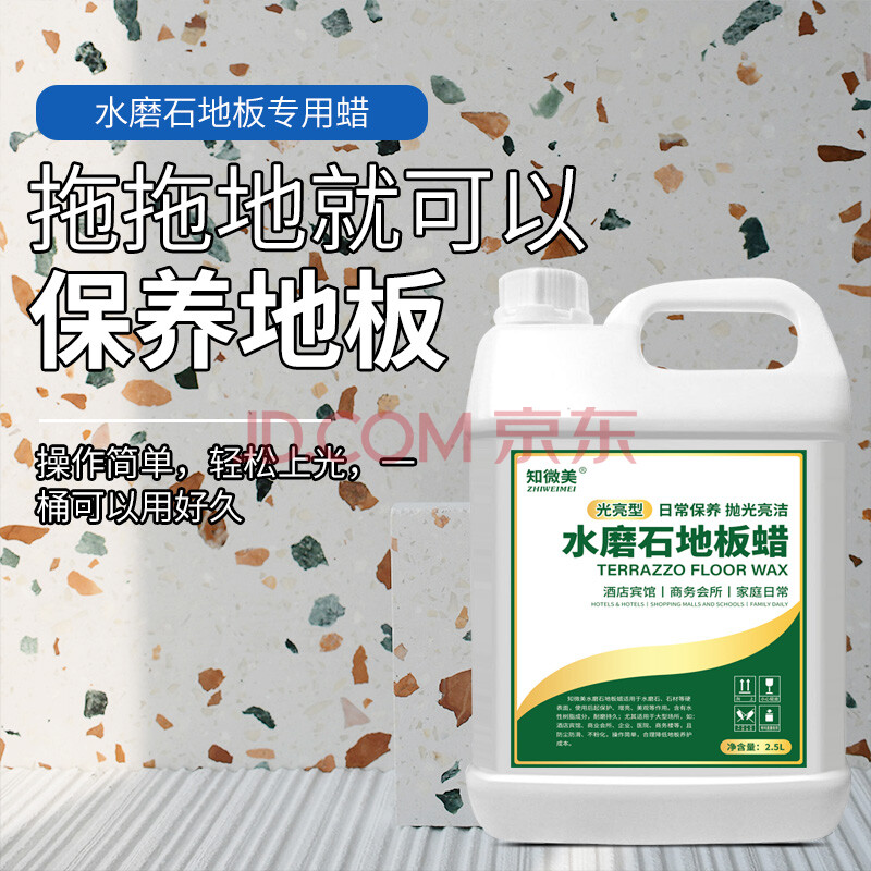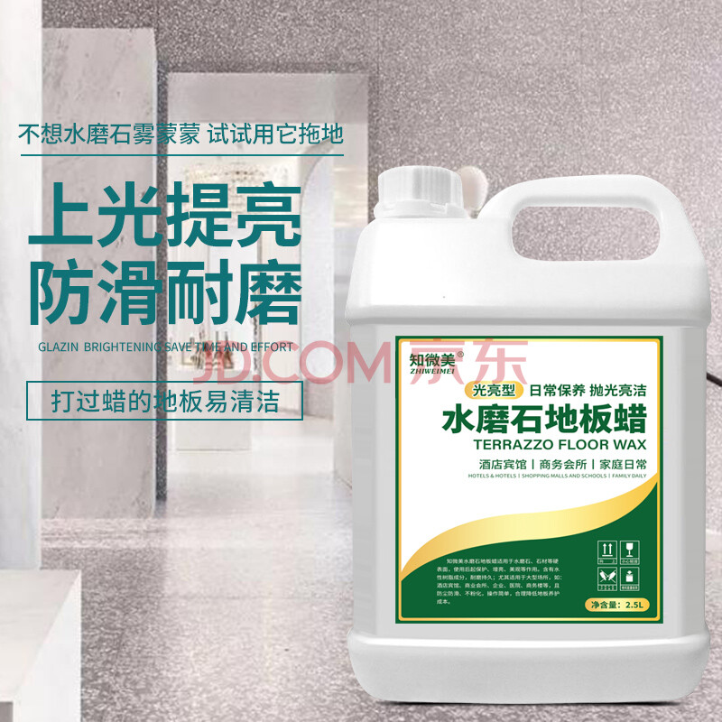 商品相册:知微美水磨石地板蜡2.5L地砖液体抛光蜡外墙瓷砖理石上光增亮护理精油蜡第1张/共9