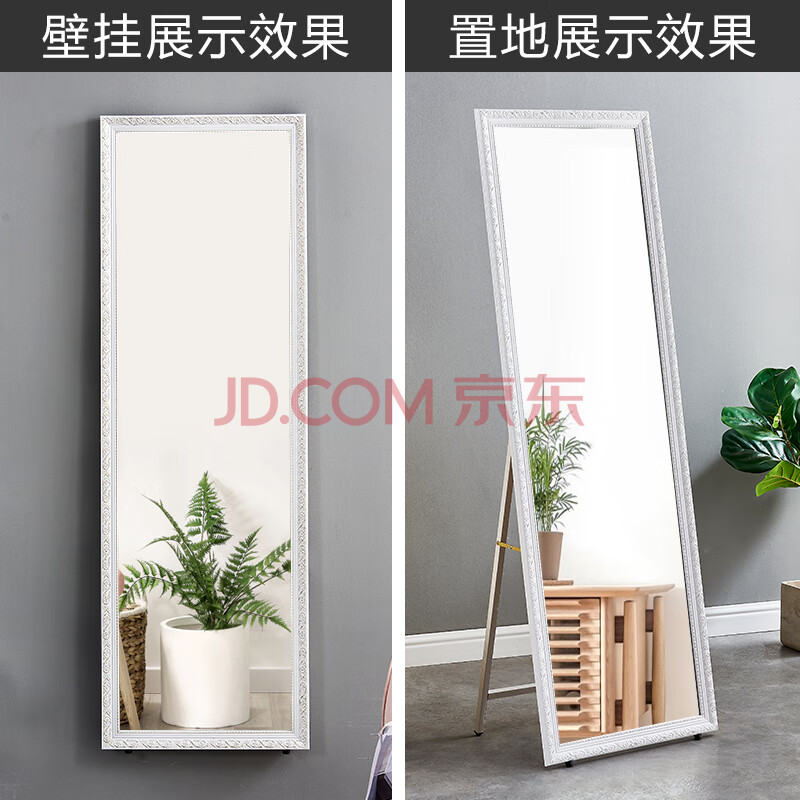 商品相册:华恺之星 穿衣镜子 全身落地镜 轻奢实木试衣镜高清超白镜子白金花纹第
