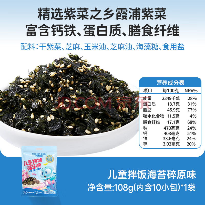 商品相册:力诚宝宝儿童拌饭海苔碎高钙宝宝零食即食调味辅食下饭拌料量贩装108g 第