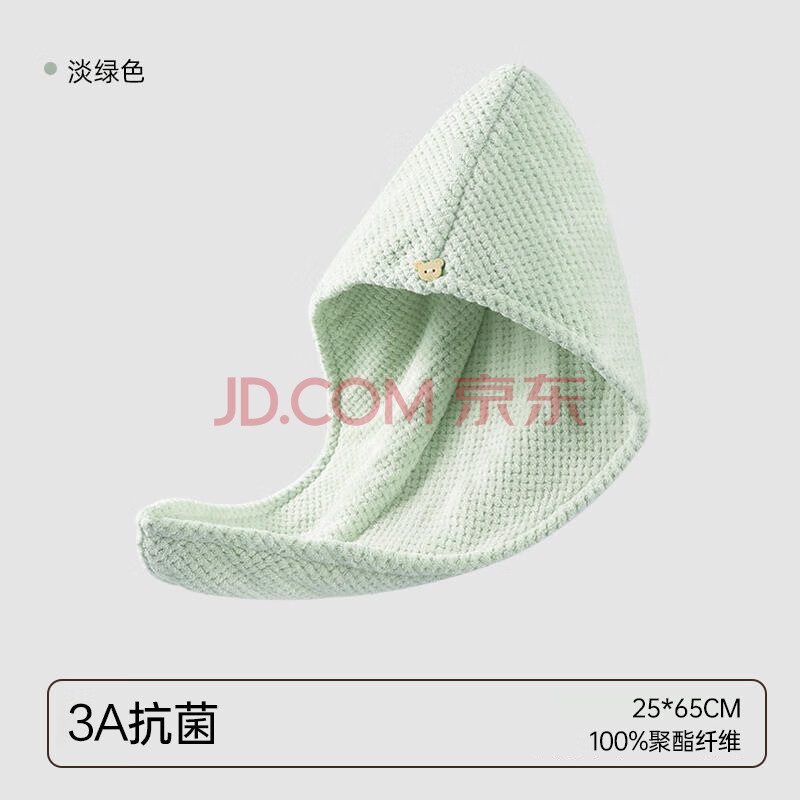 商品相册:三利干发帽A类抗菌柔软强吸水速干便携式包头毛巾 25*65cm 78G 淡绿色第1张/共5