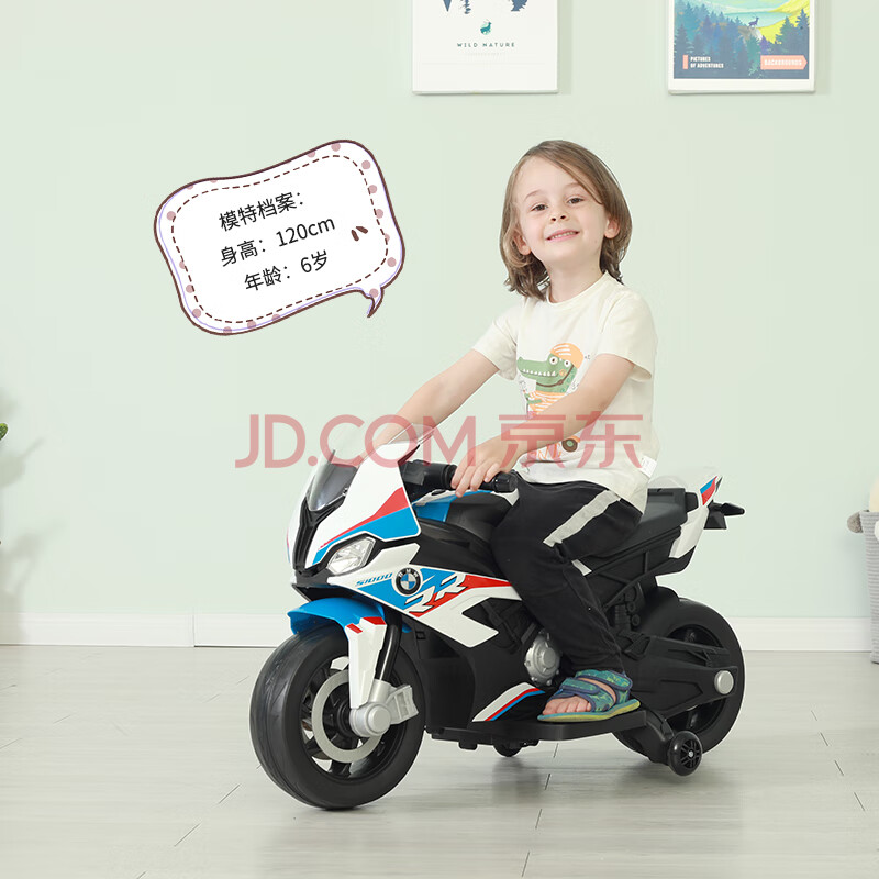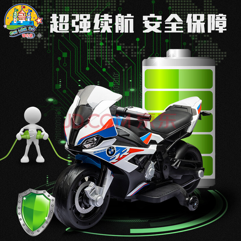 商品相册:智乐堡婴儿童电动车摩托车小孩玩具车男女宝宝童车可坐人礼物宝马时尚白第1张/共9