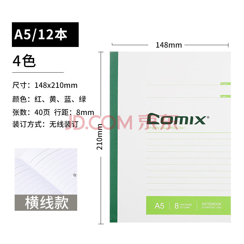 商品相册:齐心(COMIX)12本装/A5/40页无线装订软抄本笔记本子 办公用品工作记事本作业本学生文具混色装 C4503第