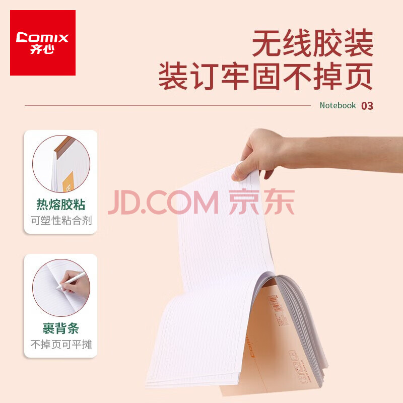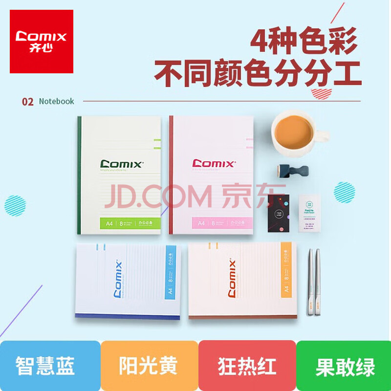 商品相册:齐心(COMIX)【热门商品】A5/30张/60页无线装订软抄本笔记本子 学生作业本软面记事本办公用品 10本装C4502-10第