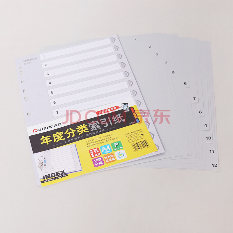 商品相册:齐心(Comix) IX894 A4易分类分页PP年度索引纸 12页(1-12) 11孔隔页标签 办公用品第