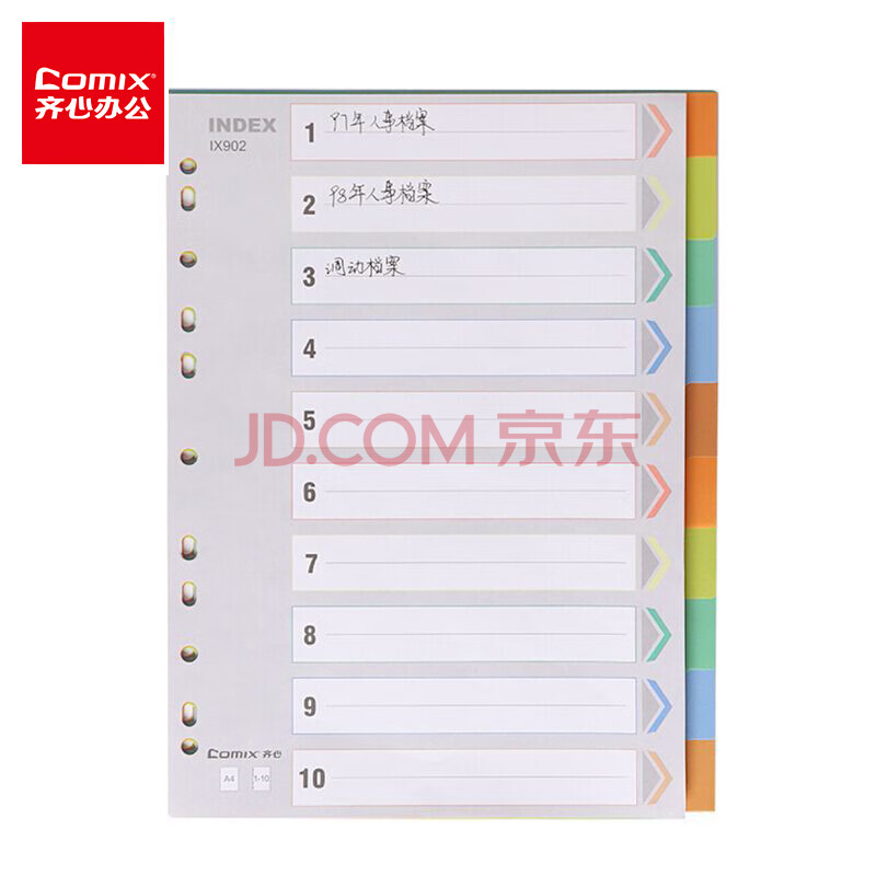 商品相册:齐心(Comix) 10色装A4十色分页索引纸11孔PP隔页标签 办公用品EX8902第