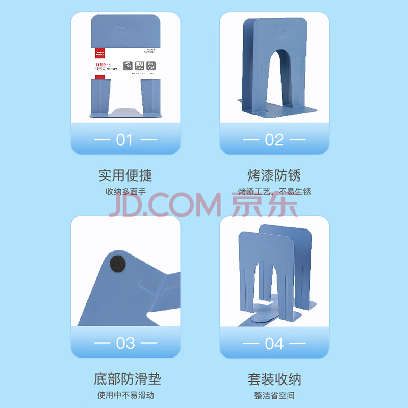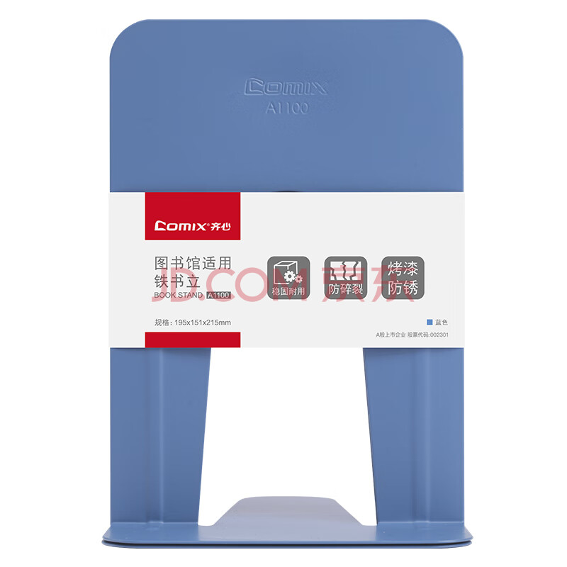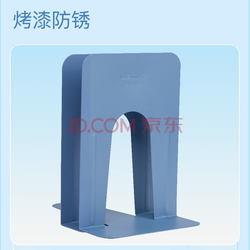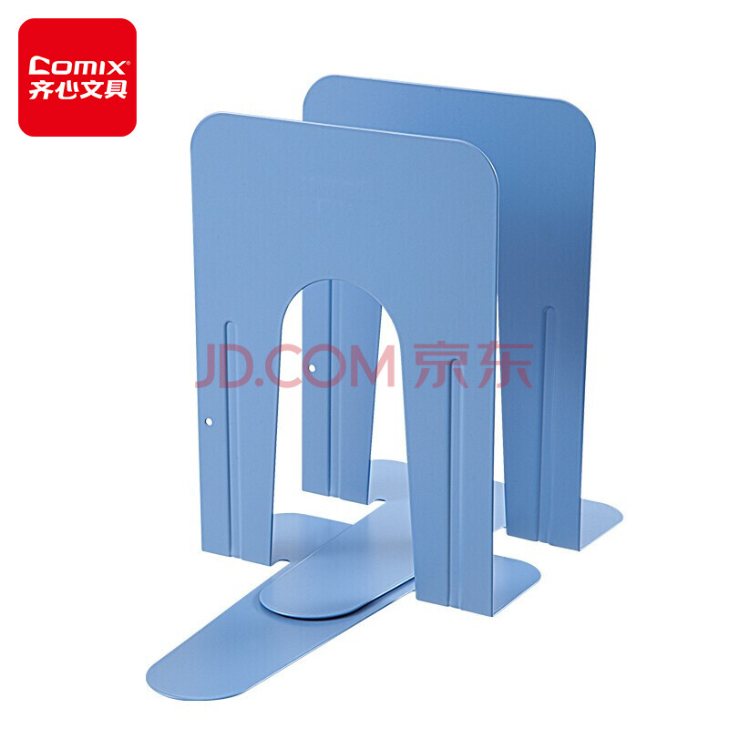 商品相册:齐心9英寸金属铁桌面书立置物架书收纳桌上书架 办公书靠2片 办公学习用品 蓝 A1100第