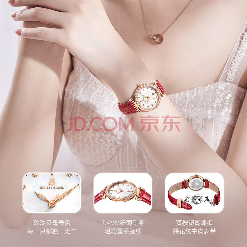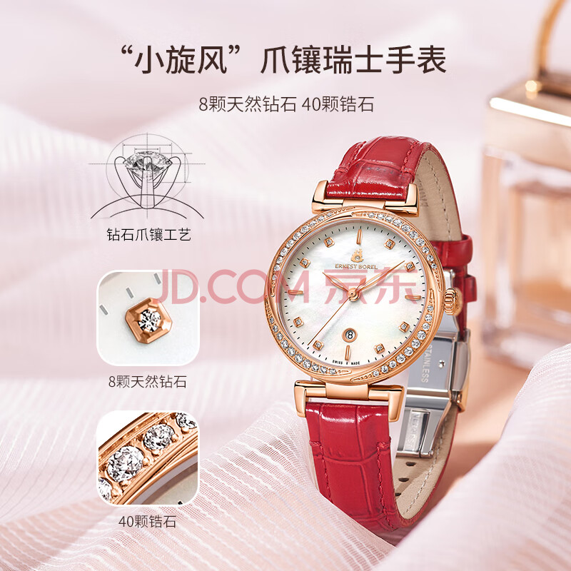 商品相册:依波路(ERNEST BOREL)瑞士手表女 女神礼物 星钻系列女士时尚镶钻小红表石英女表送女友第