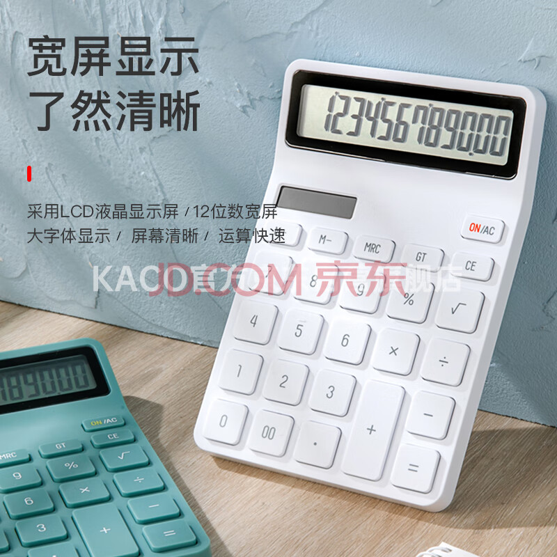 商品相册:KACO乐迈双电源计算器12位大屏幕桌面计算机办公用品白色第