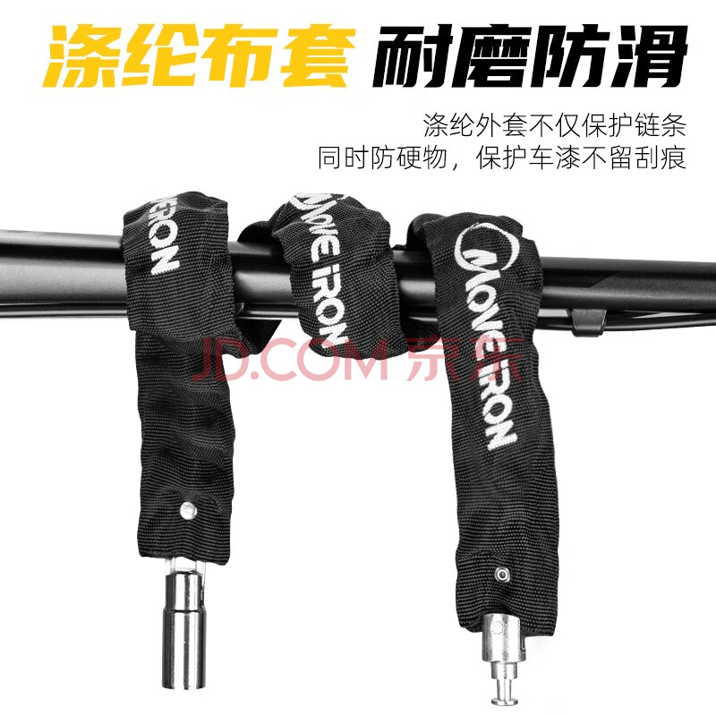 商品相册:Move iron 自行车锁电动车链条锁山地车摩托车防盗链锁加长布套链子锁防盗锁自行车配件装备 黑色第