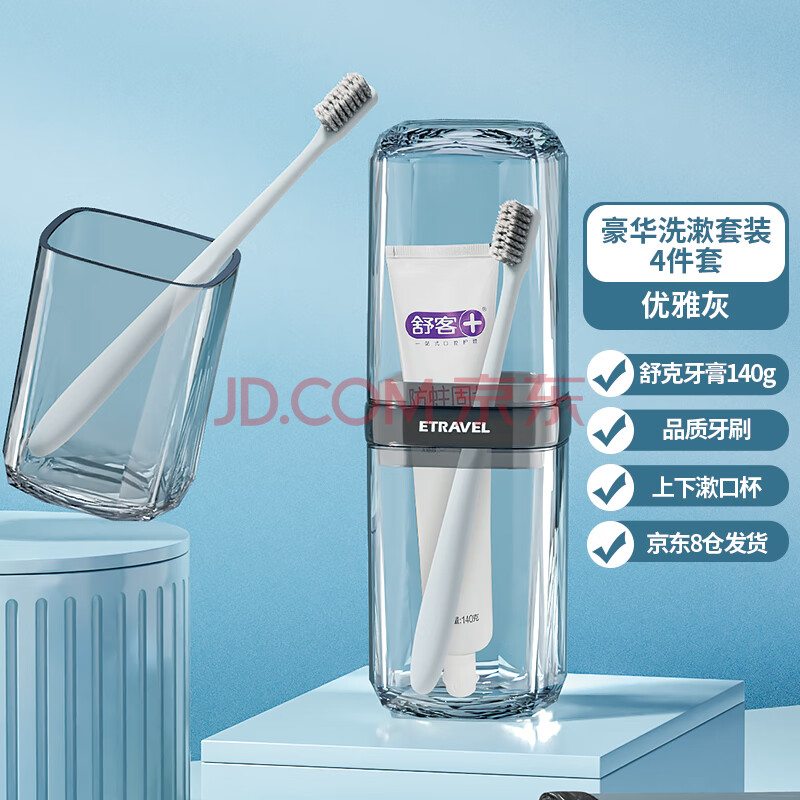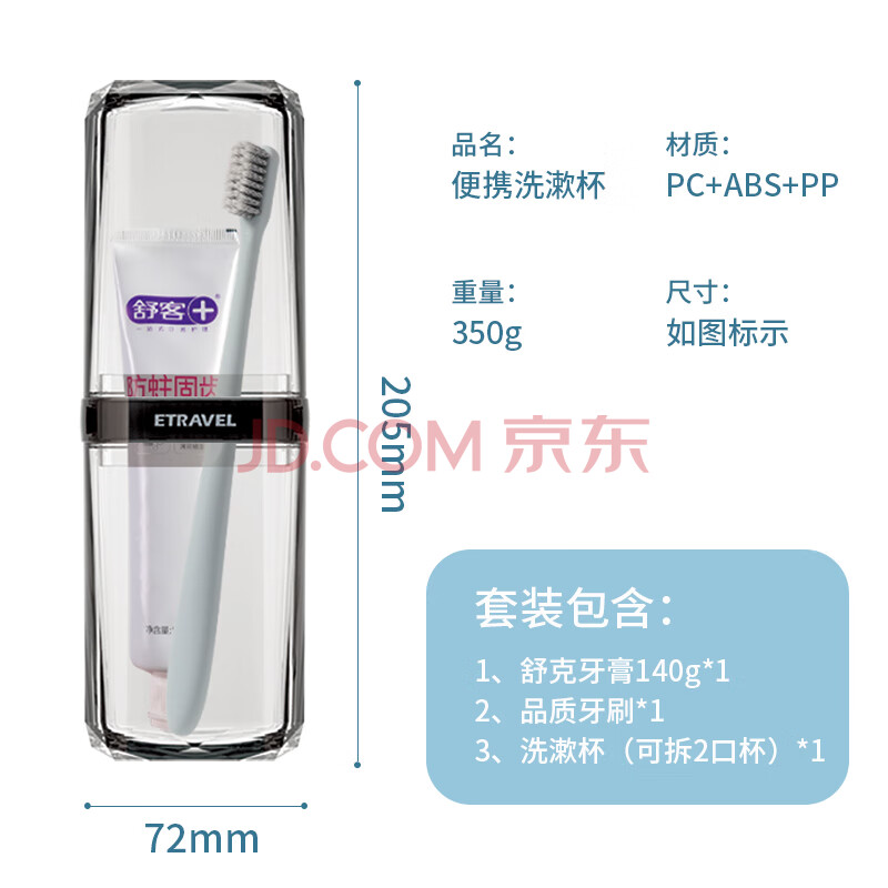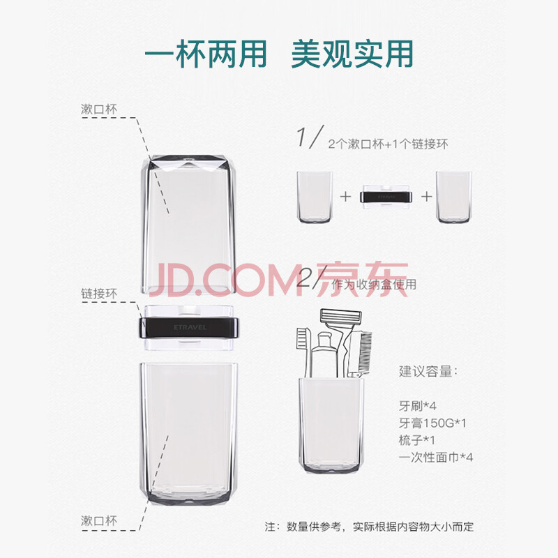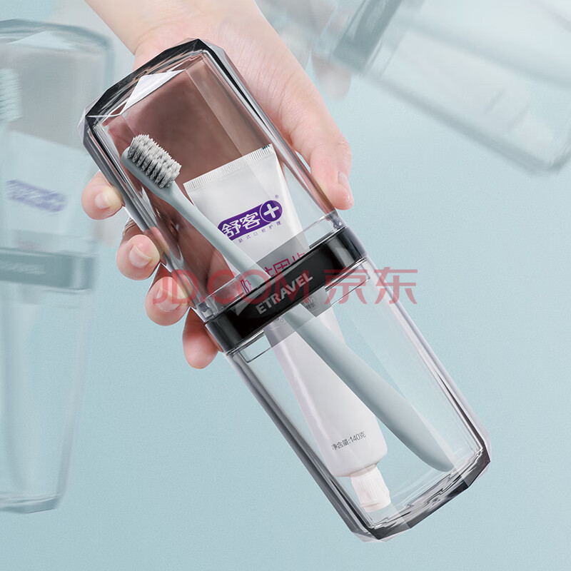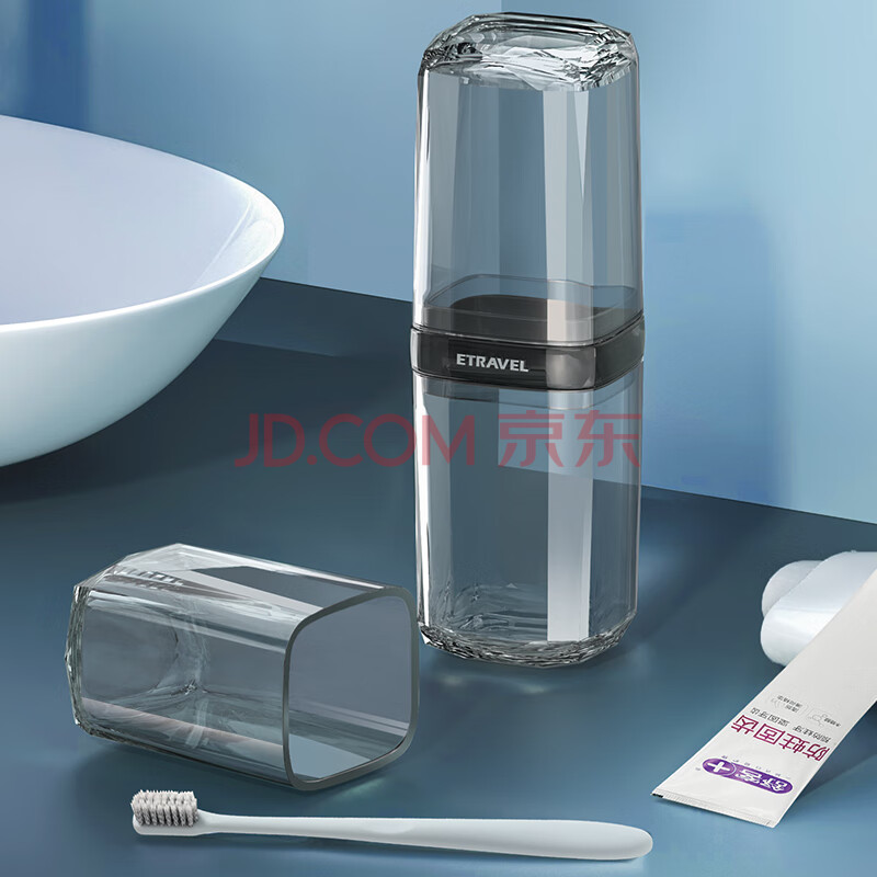 商品相册:易旅旅行洗漱套装刷牙杯漱口收纳盒洗漱杯 可拆2口杯+牙膏+牙刷 4件套第