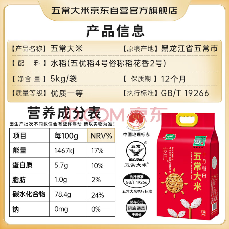 商品相册:五常大米官方溯源 十月稻田 优质五常大米 10斤 原粮稻花香2号 当季新米第