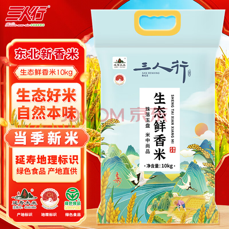 商品相册:三人行新大米 东北长粒香生态鲜香米 当季延寿粳米 企业送礼团购20斤第