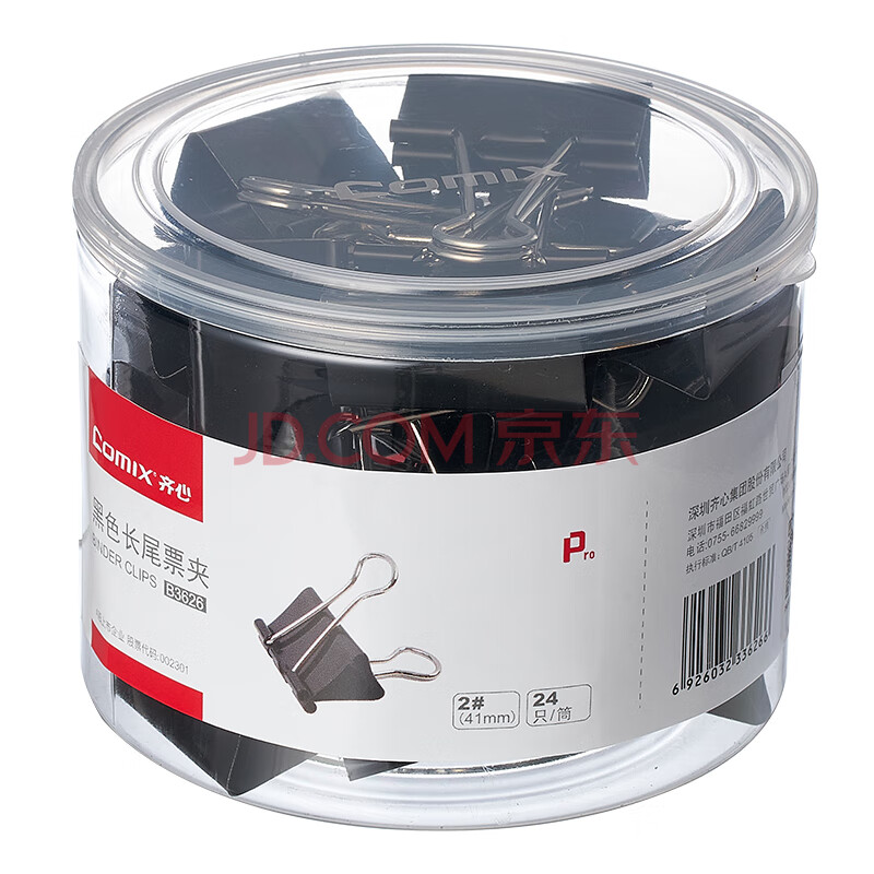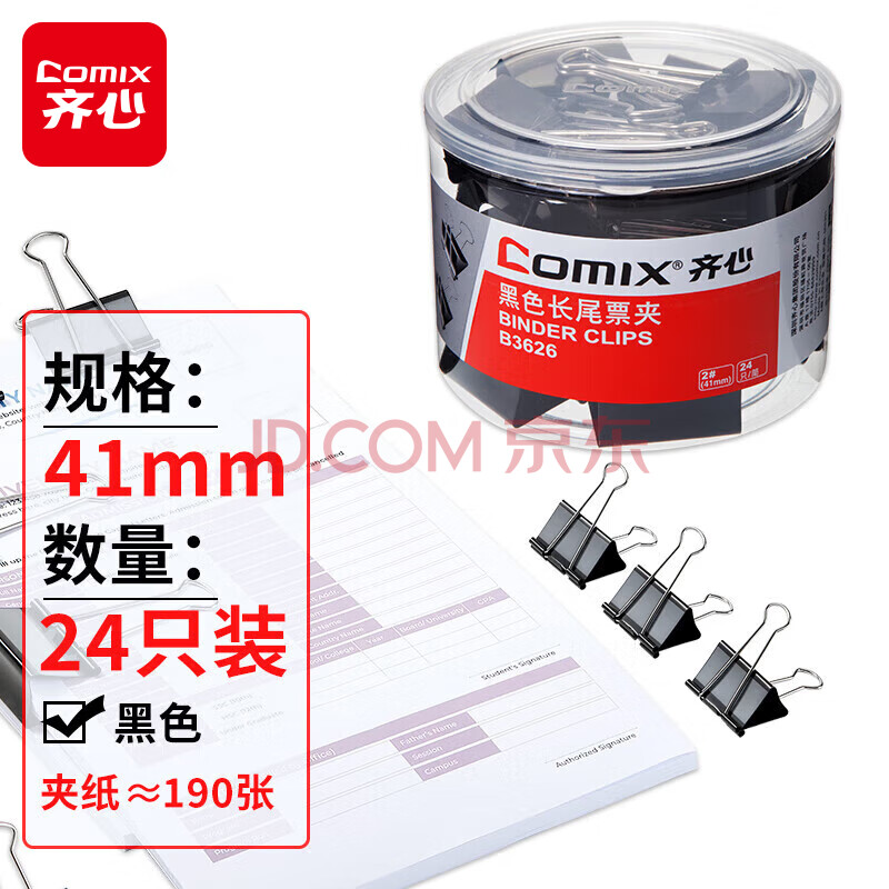 商品相册:齐心(COMIX)(Comix)长尾夹/燕尾夹/票夹 黑色金属夹子 2#41mm 24只/筒 办公用品工具B3626第