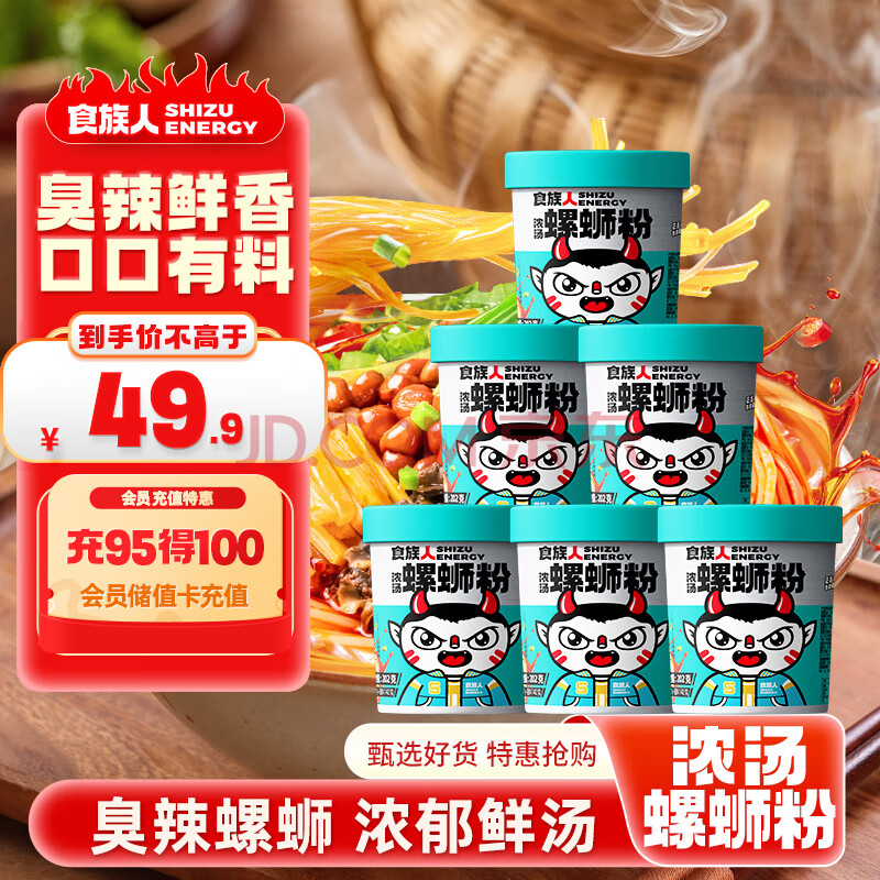 商品相册:食族人浓汤螺蛳粉202g*6桶 整箱装 广西特产方便速食米粉米线夜宵第1张/共7