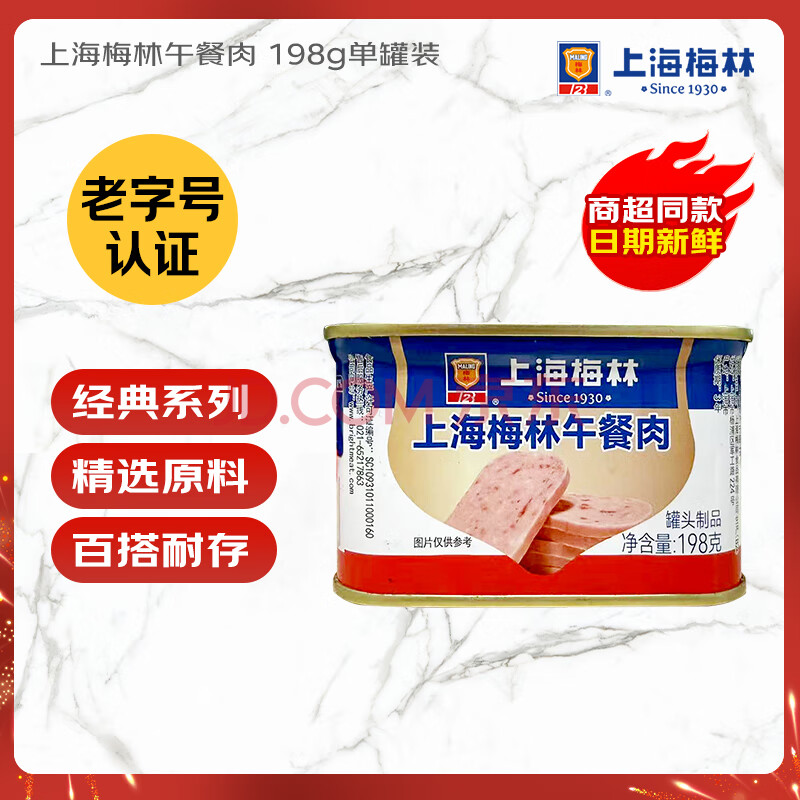 商品相册:MALING上海梅林午餐肉罐头198g 火锅食材泡面搭档早餐零食(新老包装)第