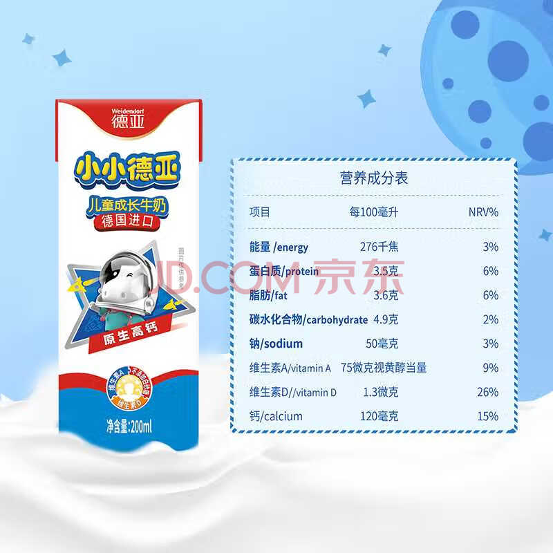 商品相册:德亚(Weidendorf)德国进口儿童牛奶200ml*24含维生素AD每盒7g蛋白质学生营养早餐第