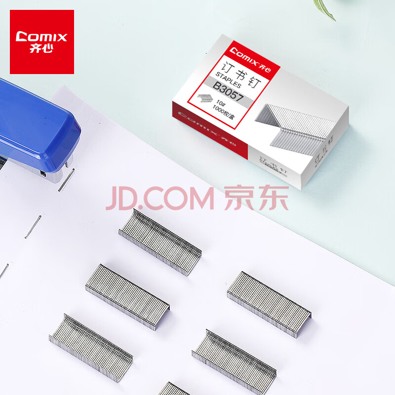 商品相册:齐心(COMIX)订书钉/订书针 1000枚/盒 10盒装大容量 10#订书机通用规格 B3057第1张/共6